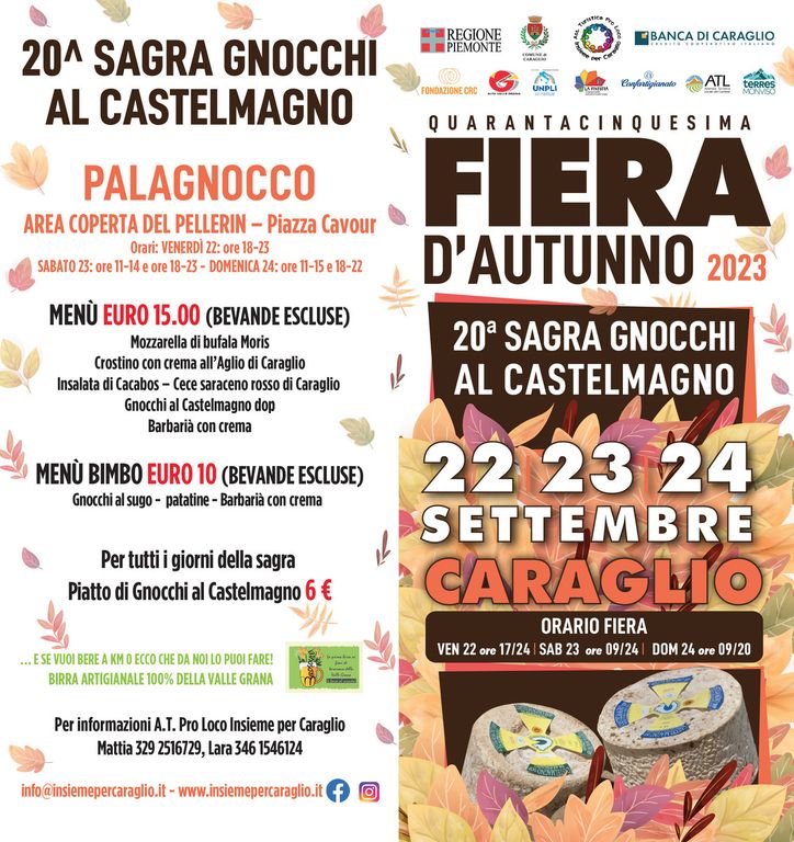 Durante la tre-giorni si potrà anche gustare il menù dell’20^ Sagra degli Gnocchi al Castelmagno.