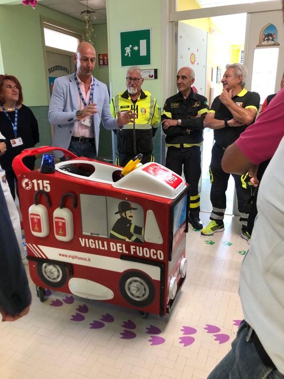 Grande lo stupore da parte della coordinatrice infermieristica, tutto lo staff medico del reparto di pediatria, che ha gradito tantissimo questo omaggio. Il fine di questa iniziativa è nella convinzione di chi ha creduto e realizzato questa “autobotte”’, che richiama un vero mezzo dei Vigili del Fuoco, è che possa servire ad alleviare la tensione e il timore del bambino a entrare nella struttura ospedaliera.