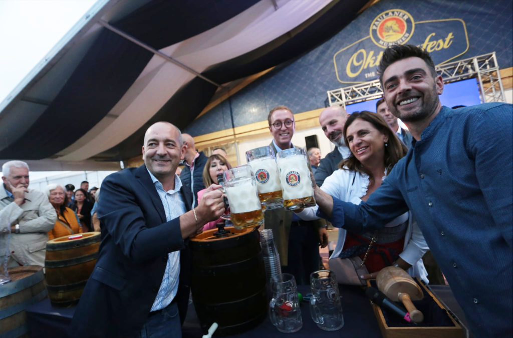 Presente anche il carro originale Paulaner del 1908, arrivato direttamente da Monaco di Baviera e trainato dai caratteristici cavalli da tiro dal manto nero accompagnato nel cammino dai costumi della tradizione bavarese dei giovani che da questa sera e per dodici giorni lavoreranno nella struttura adibita per l’evento.