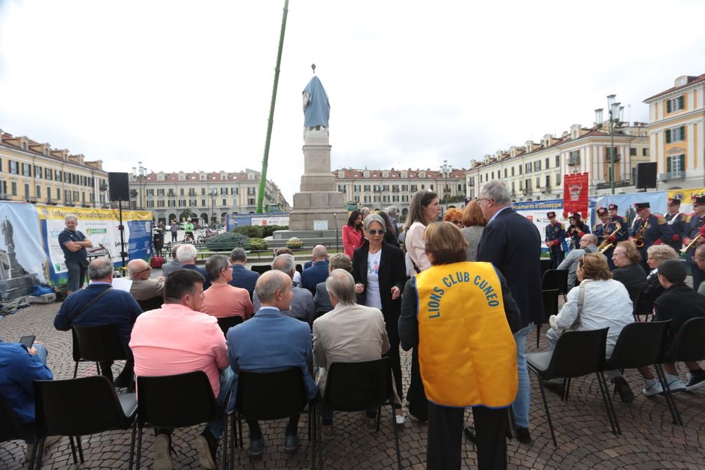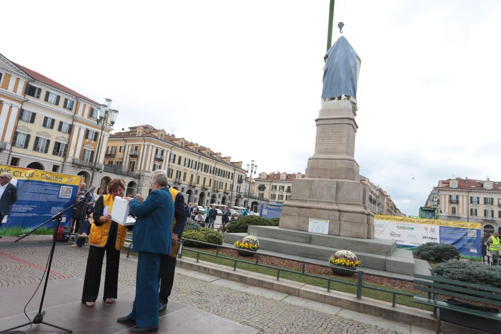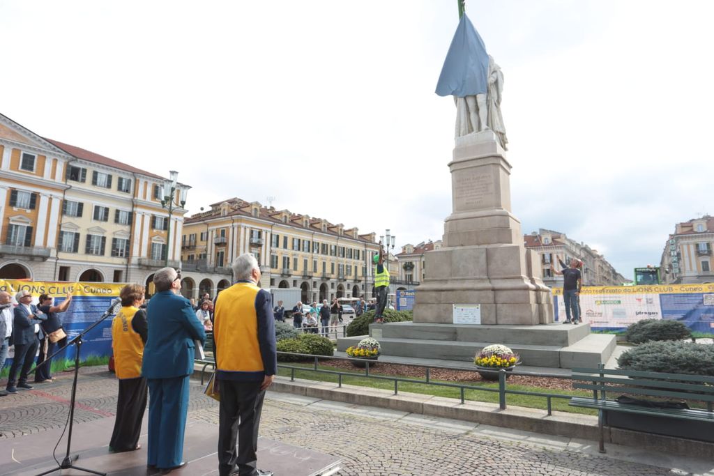 È stata svelata questo pomeriggio, giovedì 21 settembre, in Piazza Galimberti, la restaurata statua di Giuseppe Barbaroux al centro di un recente restauro, cominciato a luglio, a cura del Lions Club Cuneo.