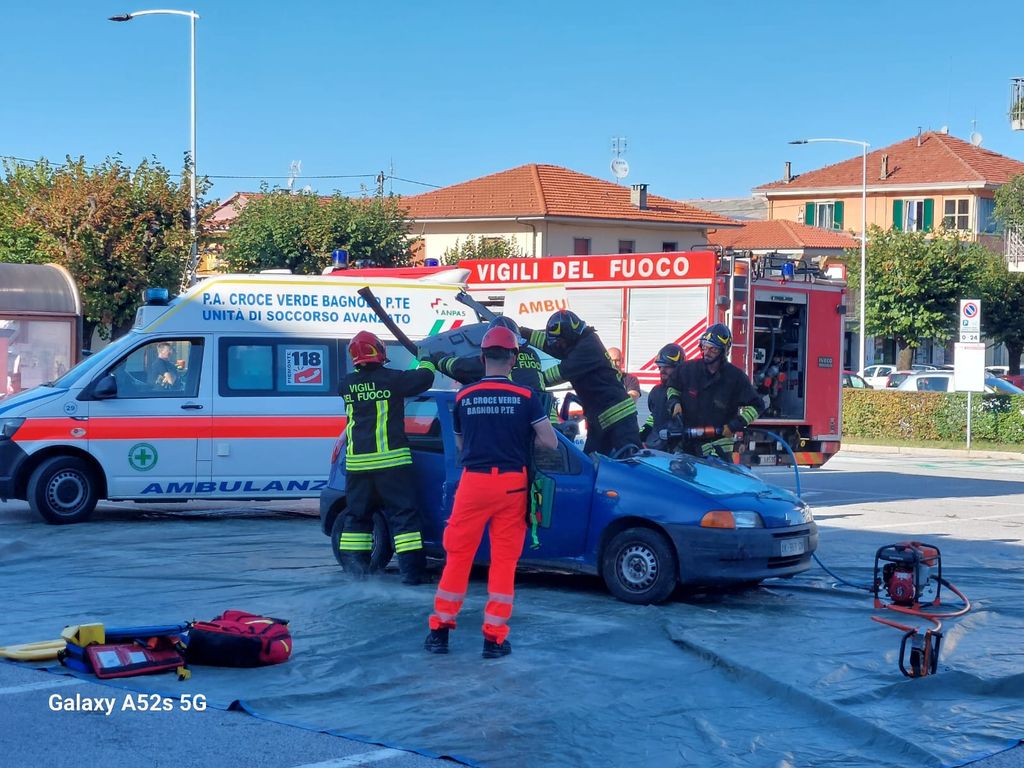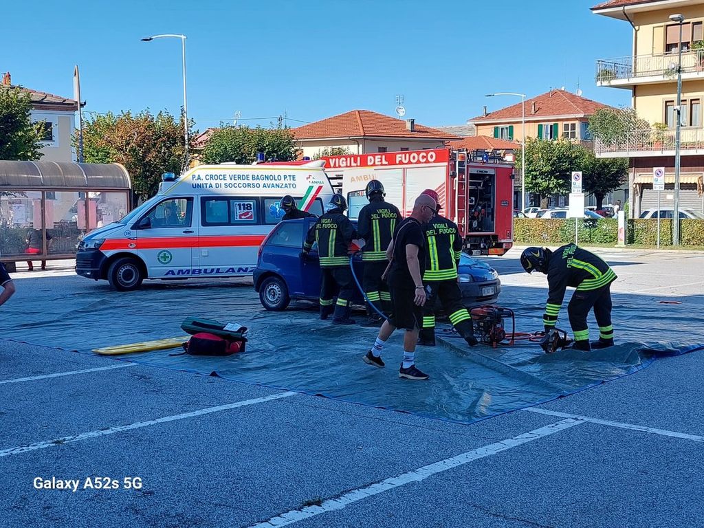 Nel pomeriggio si è tenuta una dimostrazione con la simulazione di un incidente stradale e uno spettacolare spegnimento di bombola del gas.