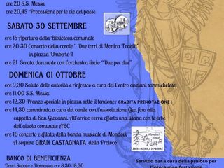 L'Associazione Turistica Pro Loco di San Michele Mondovì vi aspetta numerosi alla festa patronale di San Michele Arcangelo.