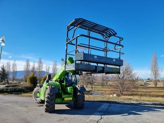 Ideale per le lavorazioni in quota, la piattaforma trilaterale ad apertura frontale è progettata per il sollevamento in sicurezza di due o tre persone. La piattaforma è dotata di quadro comandi per gestire i movimenti della macchina e dell'attrezzatura. Tra le caratteristiche vi sono la rotazione laterale della navicella ad azionamento idraulico e la protezione frontale ribaltabile. Disponibile sui sollevatori stabilizzati e i rotativi, la piattaforma pesa 555 kg, ha una larghezza di 2,4 metr40 centimetri e ha una portata massima di 800 kg.