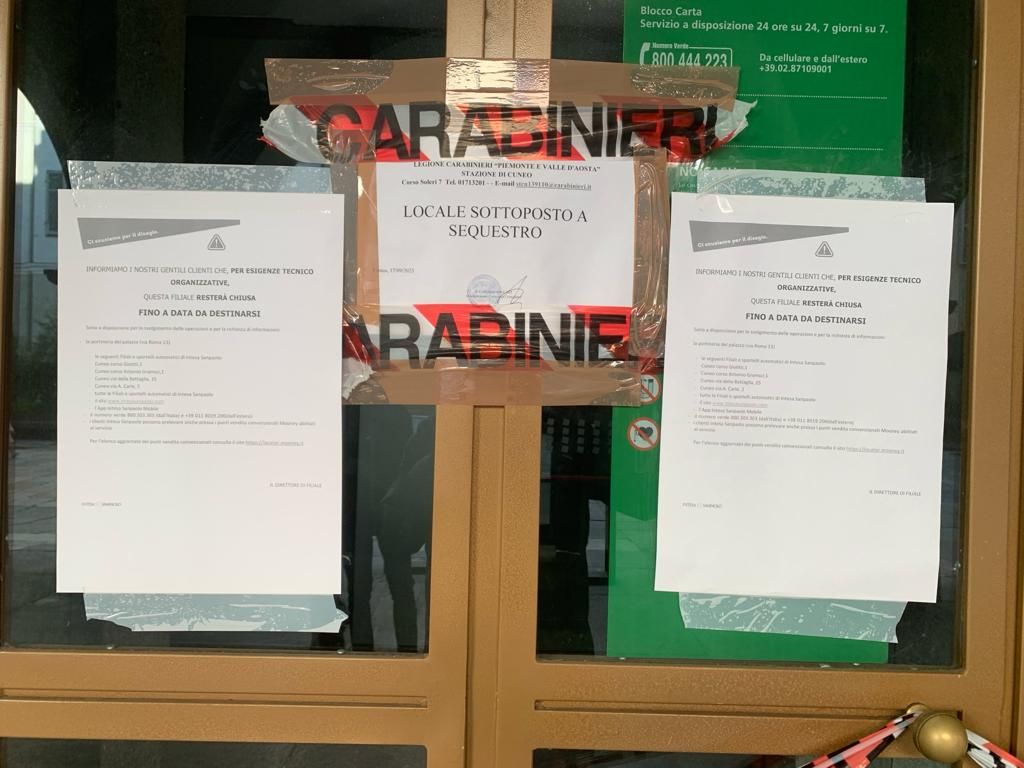 La filiale di Intesa Sanpaolo di via Roma a Cuneo rimarrà chiusa almeno fino a fine anno