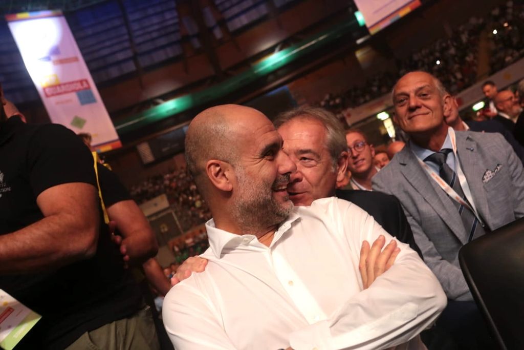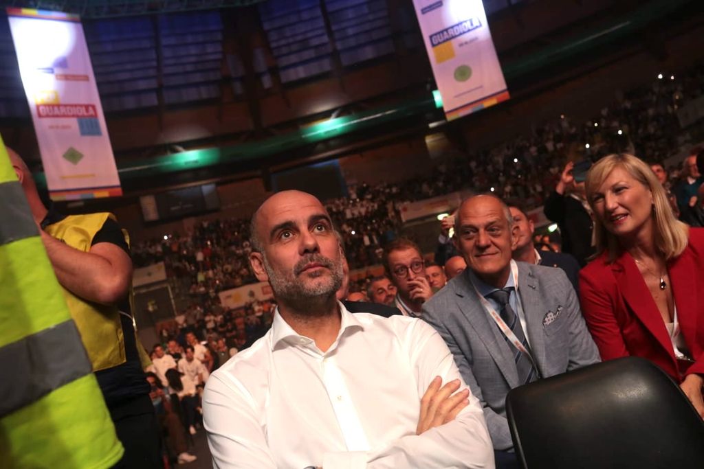 Pep Guardiola superstar, al palazzetto di Cuneo, in occasione dell'evento "Dialoghi sul talento" promosso dalla Fondazione Crc.