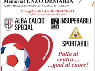 L'appuntamento è per sabato 21 ottobre alle ore 18.30 presso lo stadio Michele Coppino. Si sfideranno in un triangolare le squadre Alba Calcio Special, Insuperabili e Sportabili. Lo slogan della manifestazione è "Palla al centro, goal al cuore", l'ingresso è libero.