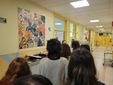 Gli studenti della terza, quarta e quinta classe di Arti figurative del liceo artistico Ego Bianchi di Cuneo, con i loro insegnanti e con il dirigente Carlo Garavagno, oggi hanno partecipato all'inaugurazione delle loro opere, che abbelliscono i muri di due reparti dell'ospedale di Cuneo.