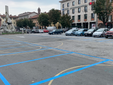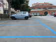 L'area in cui sono state tracciate le strisce blu è il lato ovest, ovvero la metà della piazza più vicina all'Ala polifunzionale; l'altra metà (la più vicina al Molo, dove tra l'altro sono stati disegnati dai bambini giochi sull'asfalto per il progetto “Città ludica”) resterà invece pedonale.
