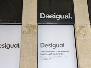 Al posto delle vetrine colorate uno sfondo bianco e la scritta inequivocabile: “Sfortunatamente questo negozio ha chiuso definitivamente. Ma siamo comunque disponibili 24 ore su desigual.com”.