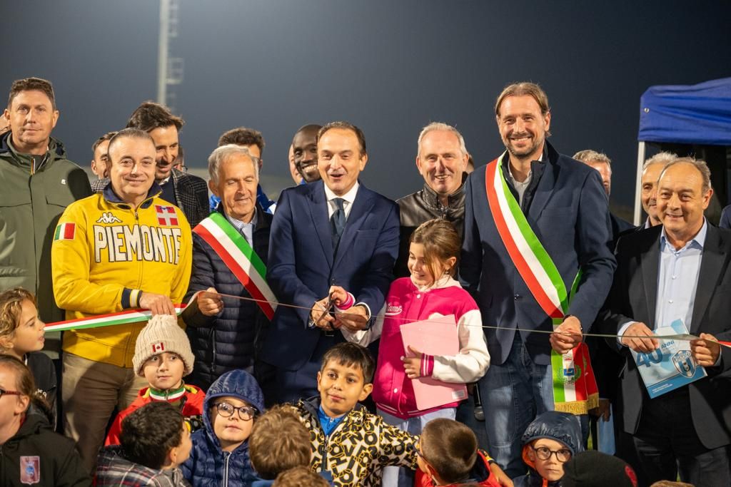 L’impianto è stato inaugurato da Alberto Cirio, presidente della Regione Piemonte, che, dopo il tradizionale taglio del nastro, ha dato il calcio d’inizio simbolico con un pallone appositamente autografato dall’ex calciatore Claudio Marchisio, il quale, non potendo essere presente all’evento, ha inviato un videomessaggio benaugurante.