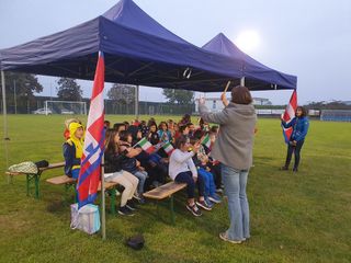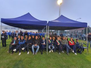 Dopo l’accensione ufficiale delle luci, che hanno illuminato a giorno il campo sportivo, i bambini della scuola primaria di Lagnasco, diretti dalle loro maestre, hanno cantato l’inno d’Italia.
