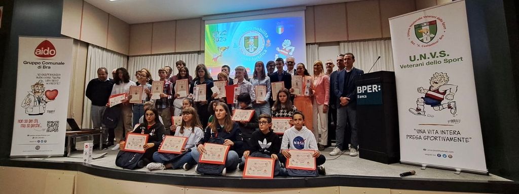 Nato da un idea dell'Unione Nazionale Veterani dello Sport di Bra, oggi progetto proposto da AIDO Gruppo Comunale di Bra con il prezioso sostegno della Fondazione CRC, la storica iniziativa "Lo sport fortifica, lo studio nobilita" legata all'anno scolastico 2022/23 in vita dal 2007 e giunta alla 16.ma edizione, Sabato scorso, 21 Ottobre, ha visto un autentico "sold out" nella splendida cornice dell'Auditorium BPER Banca, ente di credito da tempo attento al sociale.
