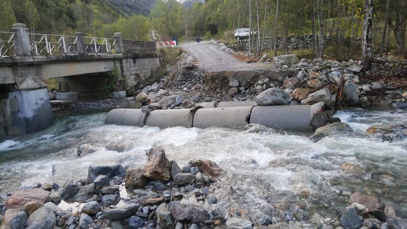 La nuova passerella di Tetto Tanasso è stata portata via dalla piena. L’aveva ricostruita il Parco dopo la tempesta Alex per una migliore fruizione della Gta (Grande traversata delle Alpi). Forte è stato l’impatto della tempesta Aline sul tracciato dell'ex-strada Enel che dal lago Rovina sale al rifugio Genova.