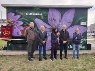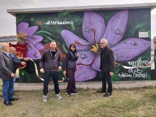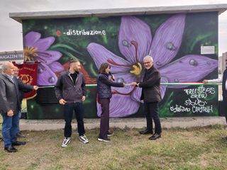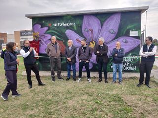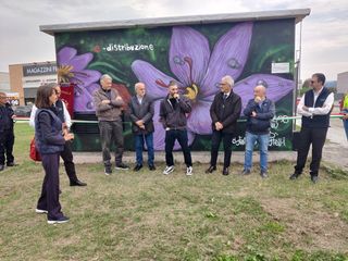 Inaugurato subito dopo, nei pressi della zona commerciale di frazione Sant’Antonio, il Murales realizzato dall’artista Stefano Castelli sulla cabina elettrica di E-distribuzione, con il fiore viola dello zafferano a dare un tocco di bellezza e di originalità al manufatto.