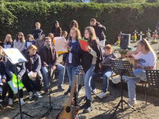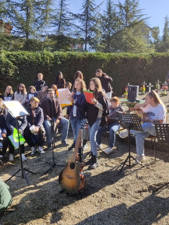 Gli studenti delle scuole elementari e della primaria di primo grado hanno letto alcuni testi tratti dagli scritti di autori come Rigoni Stern, Bertold Brecht e Anna Frank ed eseguito alcuni brani musicali, tra cui 'La Guerra di Piero' di Fabrizio De Andrè, 'A cosa serve la guerra' di Edoardo Bennato e 'Il mio nome è mai più' del trio LigaJovaPelù.