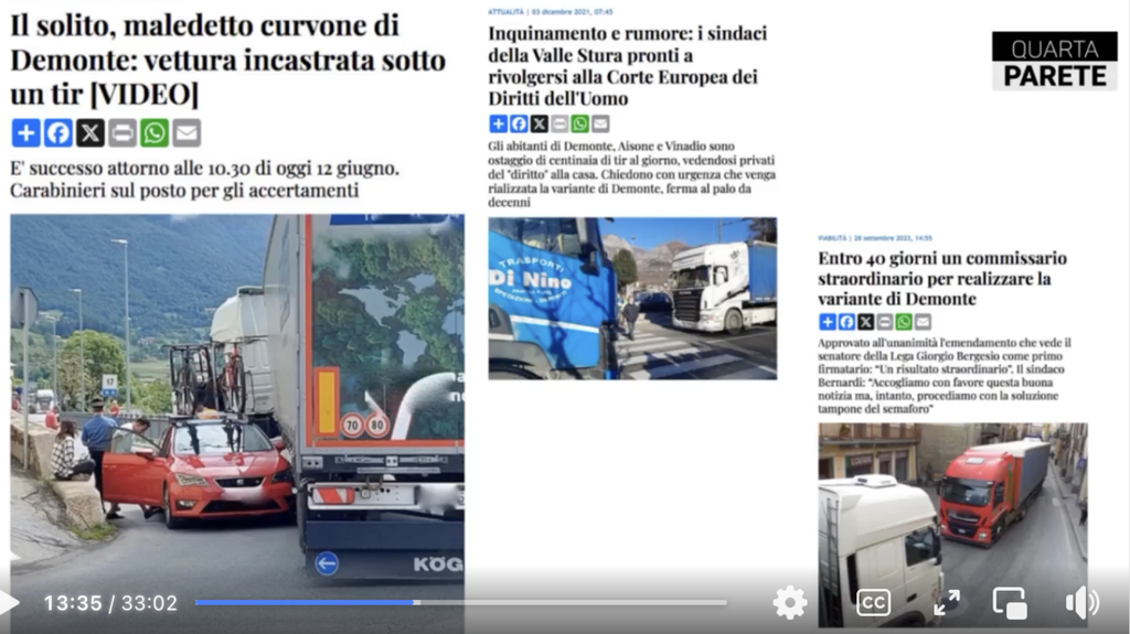 Molto seguita, ieri sera, la puntata di Quarta Parete dedicata alla variante di Demonte. Ospite Ezio Barp, presidente del Comitato Sì D.A.VS., quello che vuole la variante e che si batte da anni perché venga costruita e sposti fuori dal centro del paese le centinaia di tir che quotidianamente lo attraversano.