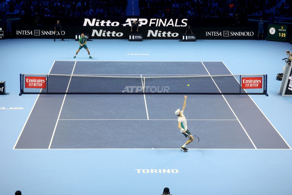 A Sinner serve vincere un set per avere la certezza aritmetica del passaggio del turno e con esso il primo posto nel Girone Verde. Una sconfitta per 2-0, se abbinata ad una vittoria di Djokovic con identico punteggio nel match del pomeriggio col polacco Hurkacz (che prenderà il posto dell'infortunato Stefanos Tsitsipas) porterebbe i tre giocatori tutti a quota due successi e una sconfitta. Ma la differenza set premierebbe i rivali dell'azzurro, che si troverebbero 5-3 contro il 4-3 di Sinner.