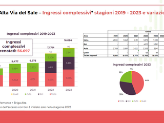 Una stagione da incorniciare quella che si è appena conclusa per l'Alta Via del Sale. Lo dimostrano i numeri dell'estate 2023 (+17% rispetto al 2022 con 13.714 ingressi): 16.084 ingressi complessivi, di cui 7.085 in moto, 5.350 in bici e 3.541 in auto. Solo contando gli accessi da Limone Piemonte e Briga Alta.