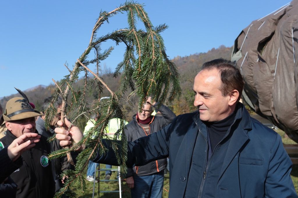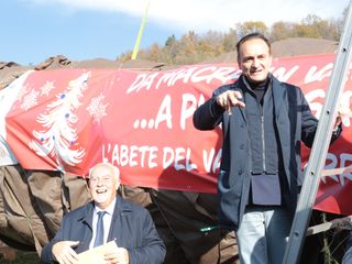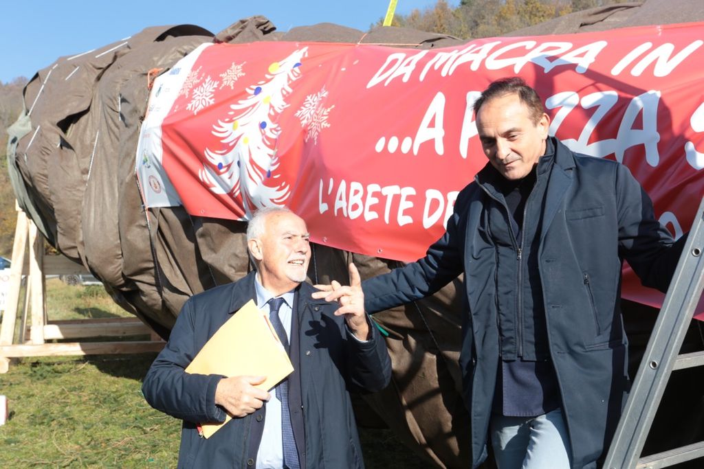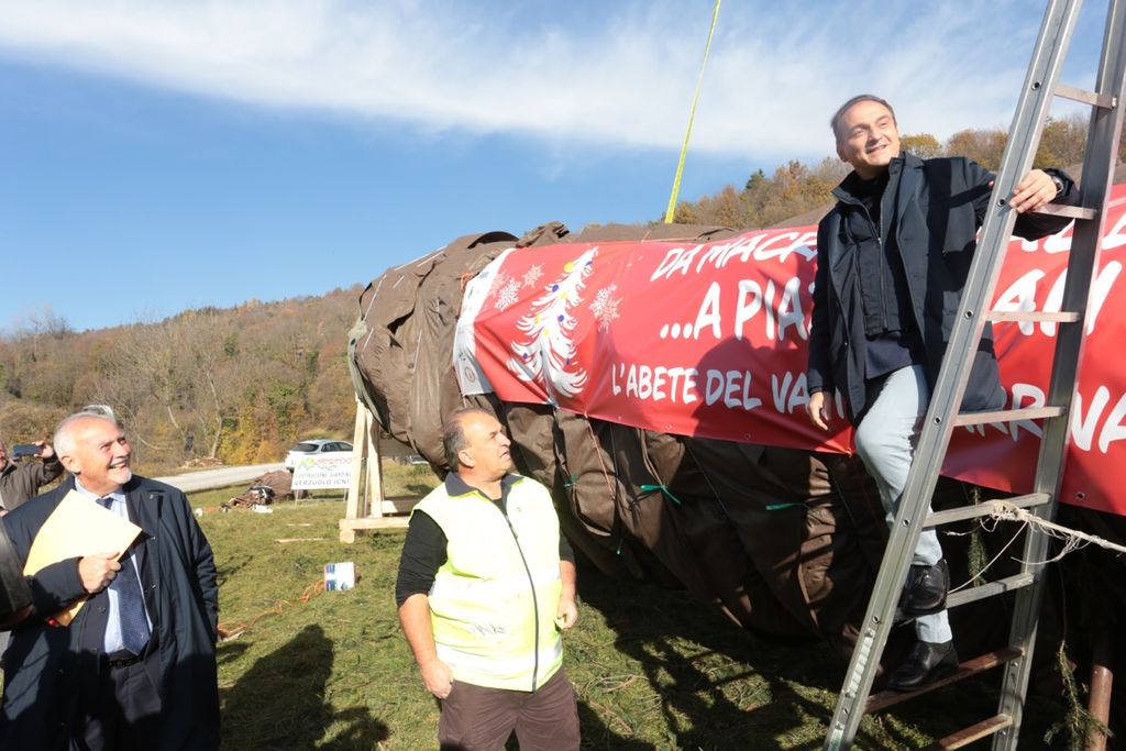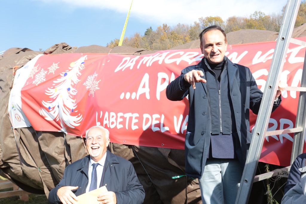 Non ha voluto mancare il presidente della Regione, Alberto Cirio, alla partenza dell'abete che adornerà ed illuminerà la piazza del Vaticano nelle imminenti festività natalizie.