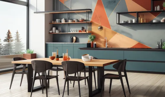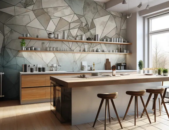 Le geometrie nelle loro forme più pure si adattano perfettamente agli interni contemporanei. Linee pulite, forme simmetriche, e una gamma di colori dall'audace al pastello possono creare ambienti rilassanti ma al tempo stesso sofisticati. Sono ideali per stanze dove la concentrazione e la calma sono essenziali, come gli uffici domestici o le stanze da letto.