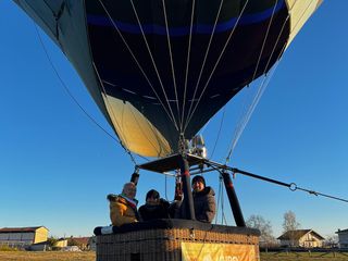 La mongolfiera, decollata da Carrù nei pressi di strada Sant'Anna, dopo un volo di circa un'ora e mezza, è atterrata a Bene Vagienna.