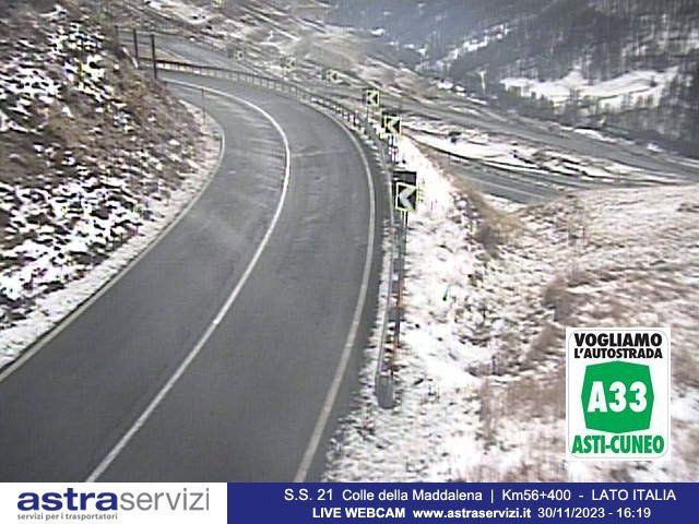 Maltempo e prime conseguenze sulla viabilità. E' stato istituito il divieto al transito, nel tratto compreso tra Argentera (Km 53+330) e il confine di Stato (Km 59+708) della SS 21 “del Colle della Maddalena”, a tutti i veicoli di massa superiore alle 19 tonnellate in entrambe le direzioni di marcia a tempo indeterminato a causa delle condizioni meteo avverse.
