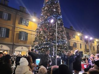 Lo spettacolo degli artisti trampolieri del Teatro per Caso con la performance "World of Wonder" ha fatto da anteprima all'accensione delle luminarie e del grande albero natalizio, quest’anno collocato sul rialzo di piazza Garibaldi.