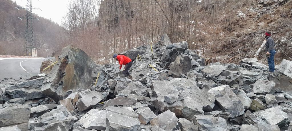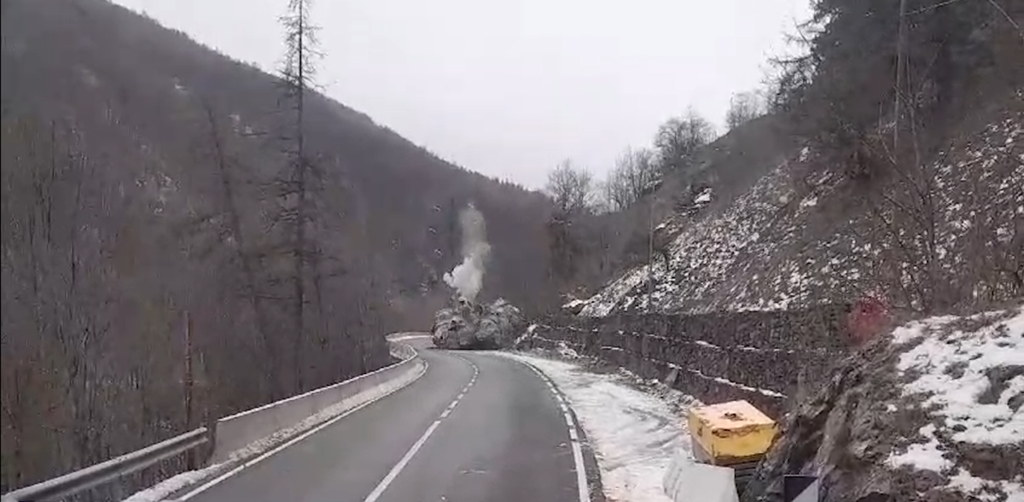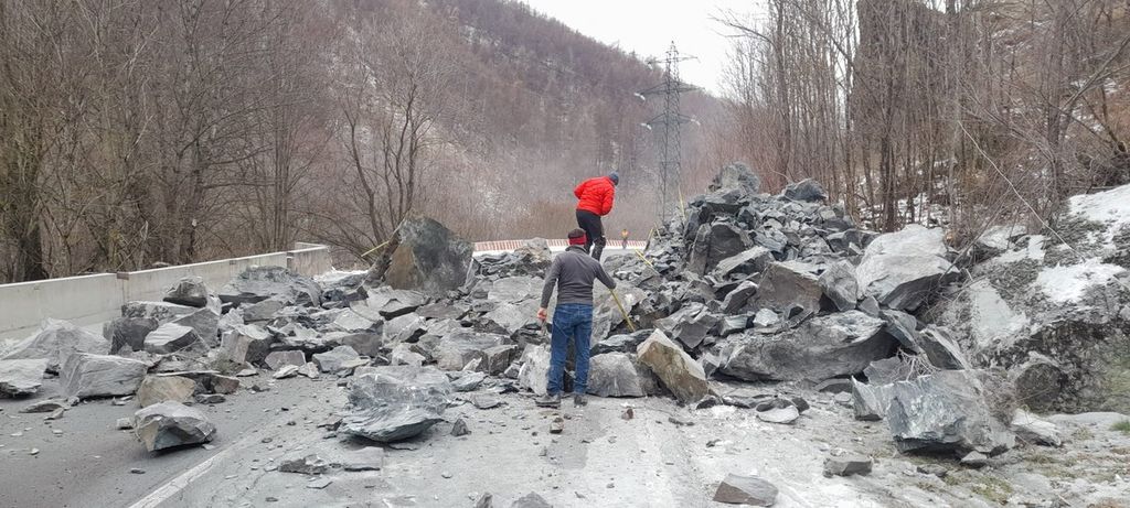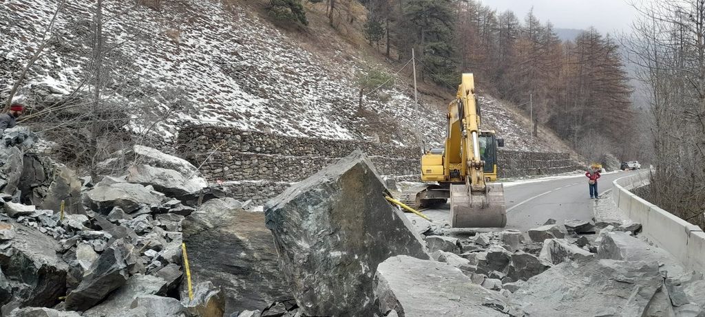 Sono stati necessari quindici chili di esplosivo per far brillare il grande masso che si è staccato venerdì 1° dicembre, probabilmente a causa del maltempo, ottocento metri fuori dalla frazione Villar di Sampeyre, in direzione alta valle Varaita.