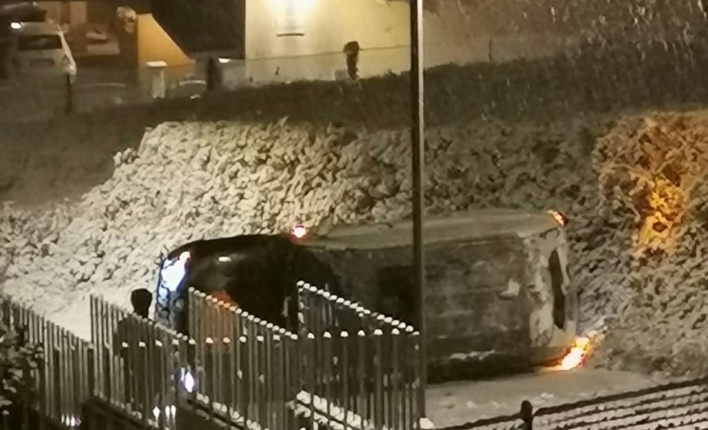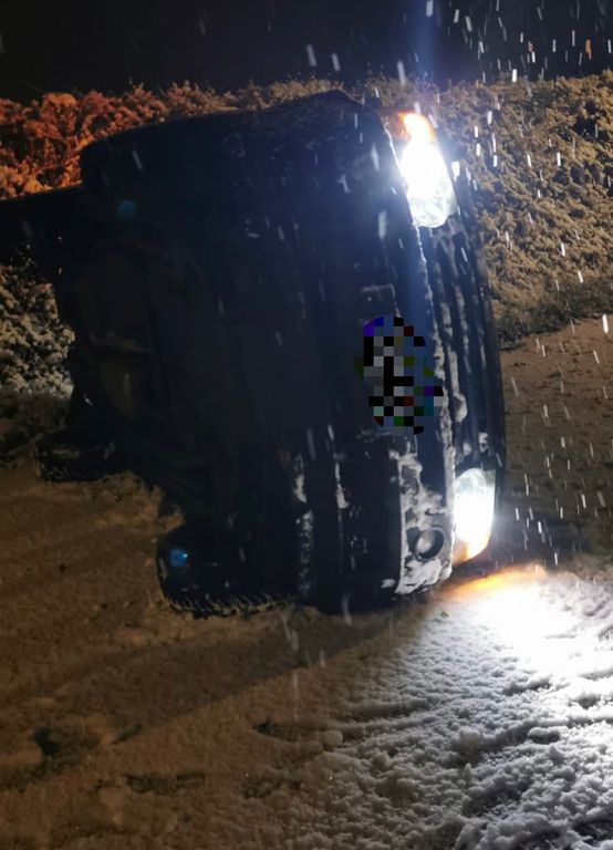 Un'auto, probabilmente a causa della neve che ha reso scivoloso il manto stradale, ha sbandato cappottandosi su un lato sulla strada che porta a Villavecchia.