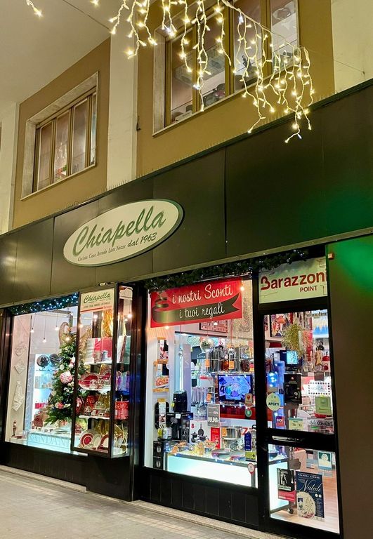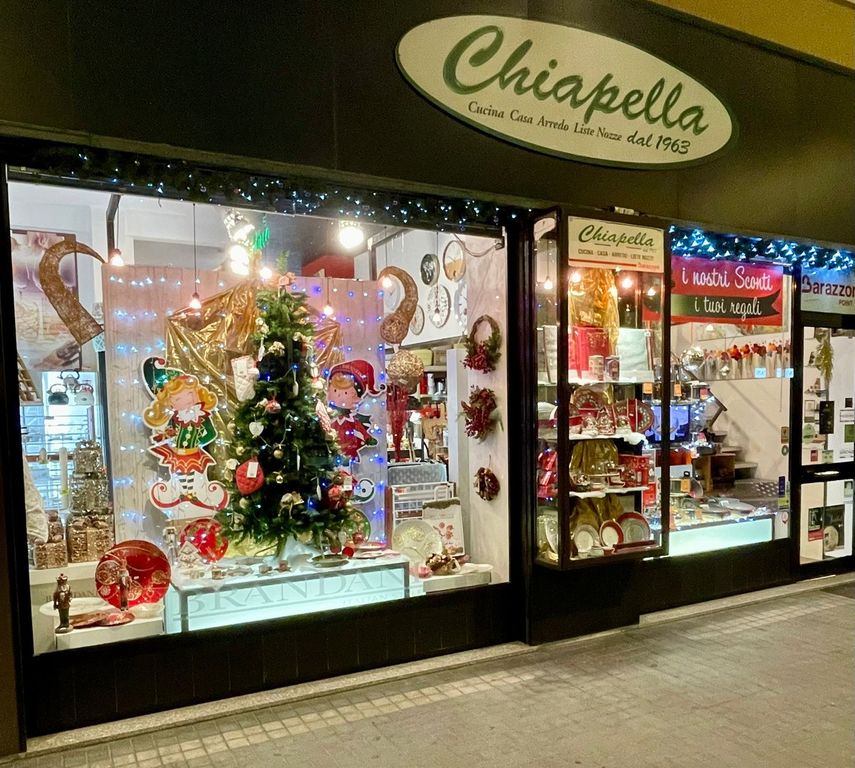 Sono piene di luci e idee regalo le vetrine dello storico negozio di corso Galileo Ferraris 19 a Cuneo. Centoventi metri quadri di esposizione su due piani, da 60 anni punto di riferimento per tutto quello che riguarda la casa, la cucina, il cookware e l'arredo, Chiapella è pronto a soddisfare le esigenze e, perché no, anche le richieste più insolite, della sua affezionata clientela.