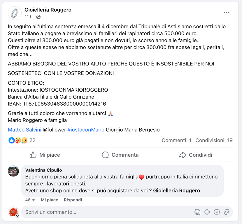 Le spese del processo hanno già superato il milione di euro, Mario Roggero chiede aiuto: "Non ce la facciamo, sosteneteci"
