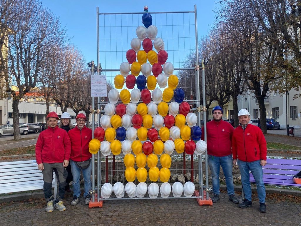 I caschi compongono la figura di albero di Natale, ognuno viene allestito preservando una propria originalità e diventando un’opera unica e autentica che mira, però, ad un comune obiettivo: richiamare l’attenzione dei cittadini sulla necessità di non sottovalutare i rischi in ambito lavorativo e risvegliare l’impegno collettivo verso la prevenzione infortuni sul lavoro. L’Albero della Sicurezza è stato realizzato dagli studenti del triennio dell’obbligo scolastico “operatore edile” della Scuola Edile, Ente bilaterale del settore delle costruzioni composto da Ance Confindustria Cuneo, Anaepa Confartigianato Cuneo, Feneal Uil Cuneo, Filca Cisl Cuneo e Fillea Cgil Cuneo. «Gli allievi, già coinvolti sul tema sicurezza durante il percorso di formazione – commenta la direttrice Laura Blua –, hanno posto, su un’intelaiatura da cantiere sorretta da un ponteggio a tubi e giunti e telai prefabbricati, 80 tradizionali caschetti antinfortunistici in rappresentanza del settore delle costruzioni. In sommità è stata posta una luce rossa segnaletica con crepuscolare».