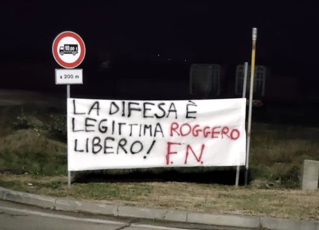 A posarli la federazione provinciale di Forza Nuova, che per bocca di Mattia Taricco approfitta dell’iniziativa per portare la formazione di ultradestra tra i attori del già affollato dibattito nato sull’onda della sentenza con la quale lunedì 4 dicembre la Corte d’Assise del Tribunale di Asti ha respinto l'ipotesi della legittima difesa nell'uccisione dei due banditi che diedero l'assalto al suo negozio condannando il 68enne commerciante a 17 anni di carcere per duplice omicidio volontario, tentato omicidio e porto abusivo di arma da sparo.
