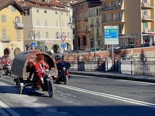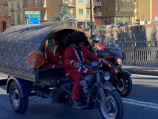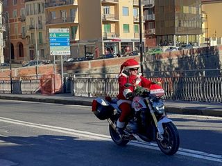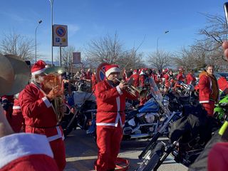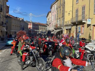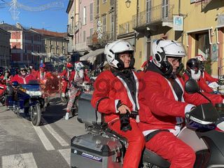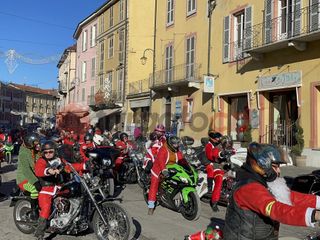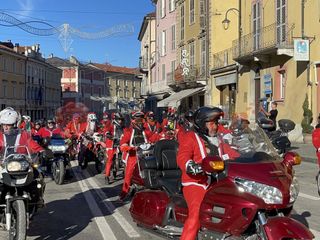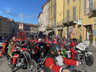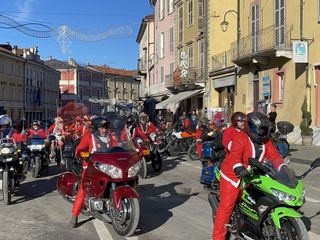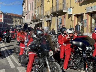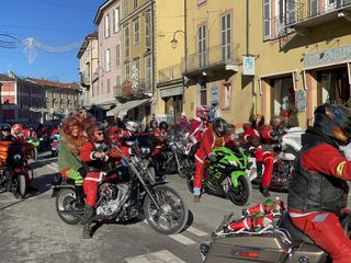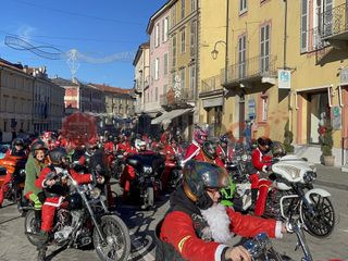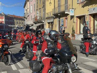 Oltre cento Babbi Natale sono saliti in sella alle loro motociclette e hanno raggiunto corso Statuto a Mondovì per prendere parte all'iniziativa solidale organizzata dall'associazione "Bikers for a dream onlus".