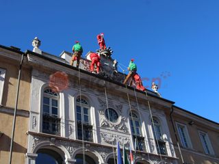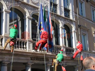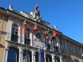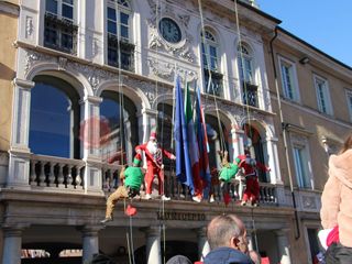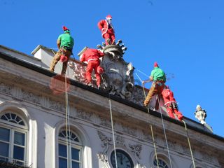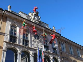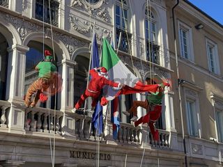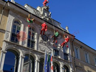 Alle 12 esatte gli uomini di "Edilizia Acrobatica", che portano i supereroi al "Regina Margherita di Torino", per un giorno hanno sostituito i costumi dei paladini Marvel per vestire i panni di elfi e babbi natale, calandosi giù dal tetto del municipio e distribuendo dolciumi ai bambini.