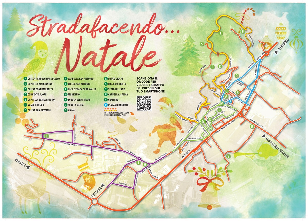 Tutta l'iniziativa ha preso il nome di "Stradafacendo ... Natale" che esprime appieno lo spirito e le intenzioni del gruppo organizzatore: passeggiando per le vie di Piasco si assapora pienamente l’atmosfera del Natale, che non è sicuramente regali e consumismo, ma la nascita di Gesù in una capanna.