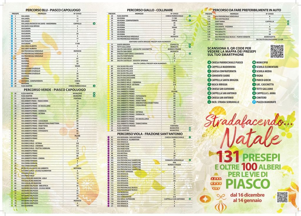 Nel 2021 si è deciso di decorare le vie del paese anche con dei presepi costruiti dai piaschesi senza alcun limite alla fantasia personale ed all'estro artistico.
