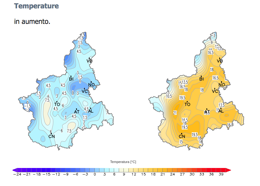 E' il sud della regione a soffrire, in particolare la provincia di Cuneo e le sue Alpi, dove non nevica dall'8 dicembre e, soprattutto, dove le temperature, complice il fenomeno dell'inversione termica, sono decisamente sopra la media stagionale.