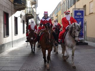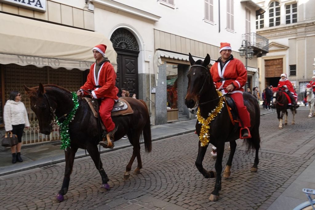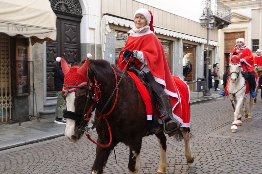 Per Giorgio Revelli e compagni di scuderia che condividono la passione equestre, di rigore il classico cappellino ed il tradizionale abito del grande vecchio dalla lunga barba bianca. Tutti insieme hanno portato il saluto a grandi e piccini, un saluto pieno di auguri per il Natale che sta arrivando, perché sia all’insegna della felicità. Che la festa abbia inizio!