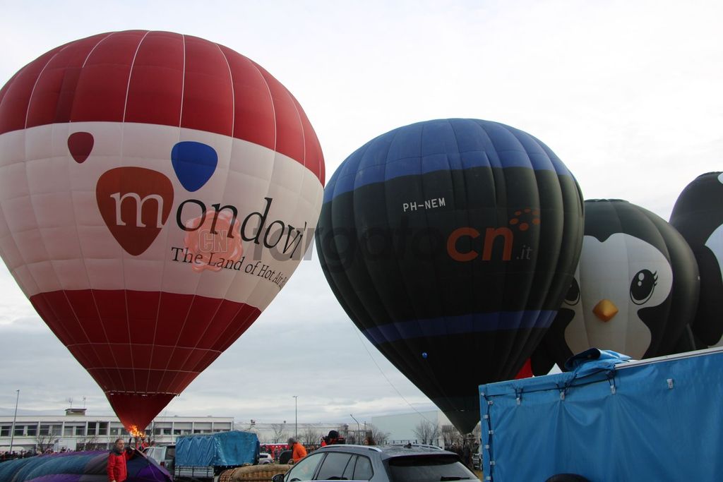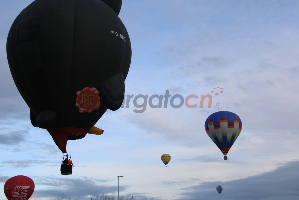 Trenta palloni aerostatici in volo per colorare i cieli di Mondovì. Primo spettacolare decollo oggi, sabato 6 gennaio, per il 34^ Raduno Internazionale dell'Epifania.