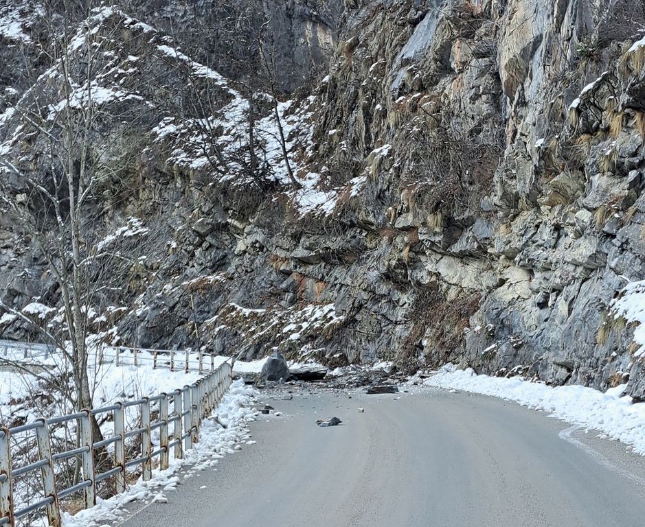 Piccola frana sulla strada provinciale che va da Pradleves a Castelmagno, poco prima di Campomolino. Il distacco è avvenuto nella mattina di oggi 12 gennaio.