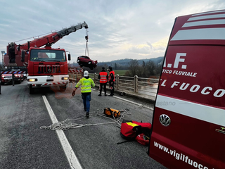 C’è una vittima nell’auto caduta da un ponte della fondovalle Tanaro a Farigliano
