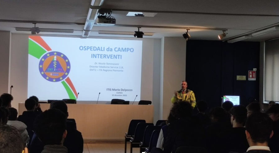 Nella giornata di martedì 12 dicembre 2023 si è tenuto presso l'istituto Tecnico Industriale Mario Delpozzo il convegno ‘PROTEZIONE CIVILE E MAXIEMERGENZA 118’.