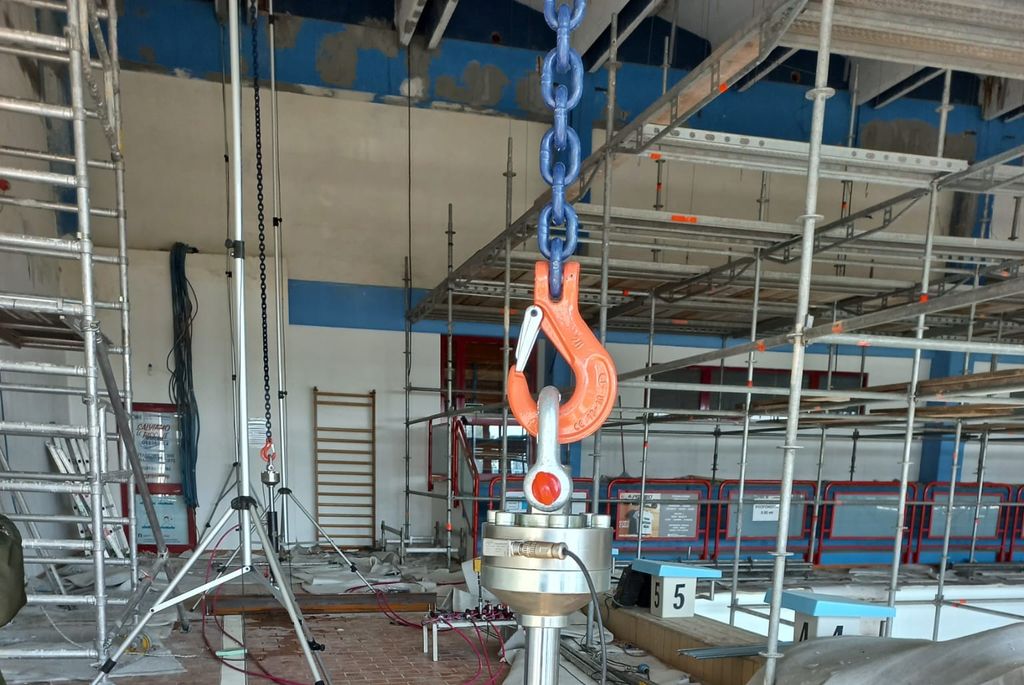 L'intervento attualmente in corso riguarda il rafforzamento dei pilastri portanti e dei punti di connessione con le travi, riducendo allo stesso tempo il peso della struttura della controsoffittatura che era collassata.