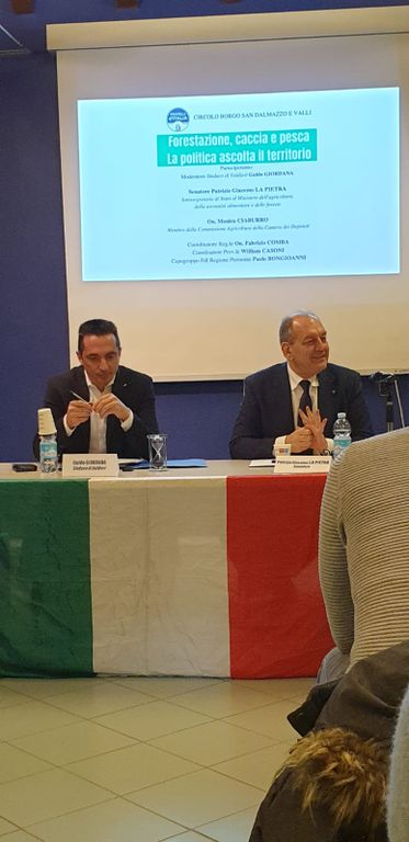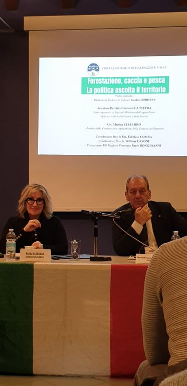 Si è parlato di sovranità alimentare e foreste nella tre giorni, in provincia di Cuneo, con il senatore Giacomo Patrizio La Pietra, sottosegretario al Ministero dell’Agricoltura. Sabato 20gennaio il sottosegretario ha presenziato a Valdieri al convegno “Forestazione, caccia e pesca – la politica ascolta il territorio”, organizzato dal circolo di Borgo San Dalmazzo e Valli di Fratelli d’Italia.
