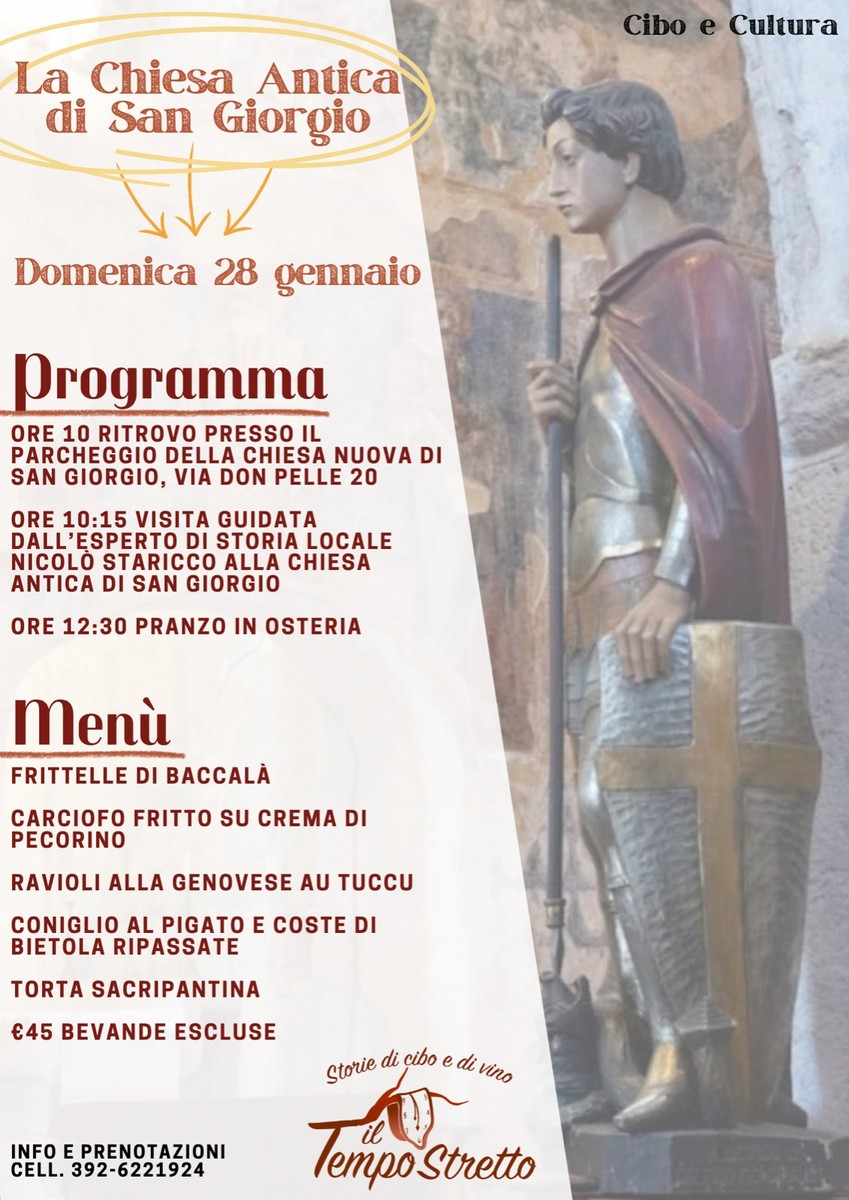La mattina, si potrà partecipare a una visita guidata alla Chiesa antica di San Giorgio, un edificio di grande valore storico e artistico. La chiesa è stata fondata prima dell'anno 1000 e conserva al suo interno affreschi danteschi che ritraggono personaggi della Divina Commedia.