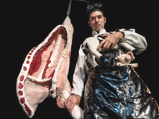 Abattoir Blues è l’ultimo spettacolo della Trilogia dell’Abbondanza. Dopo gli sprechi alimentari (Funky Pudding - 2009) e l’abuso di zuccheri (Sweet Dreams - 2014), Luigi Ciotta porta nuovamente all’attenzione dello spettatore un tema caldo dei nostri tempi: il maltrattamento degli animali negli allevamenti intensivi e il rapporto ambivalente con la carne, caratterizzato da sempre nuovi tabù. Anche questa volta non si vuole puntare il dito contro qualcuno. Il tema è l’uomo, con le sue contraddizioni e debolezze nell’affrontare i sentimenti più oscuri della sua anima, della sua parte più bestiale, rappresentata proprio dal rapporto con gli animali in scena. A ciascun animale spetterà una sorte diversa, così la macellazione diventerà un pretesto per esibirsi in numeri comici circensi e grandi classici della magia. Un maiale prima di essere macellato verrà tagliato a pezzi per essere poi ricomposto in una scatola magica. Un coniglio riapparirà da un cappello per scappare al suo destino, mentre una gallina obesa sparirà da una gabbia troppo stretta per contenerla. Dei polli diventeranno cavie contro le quali lanciare coltelli prima di essere appesi al gancio e offerti al pubblico nella formula “già spennati”, mentre interiora di animali fatte di corde e nodi prenderanno vita in esercizi di illusionismo sempre più complicati. Una pecora verrà suonata come cornamusa ed un mezzo manzo appeso ad un palo diventerà un partner per un acrobatica scena di Tango.