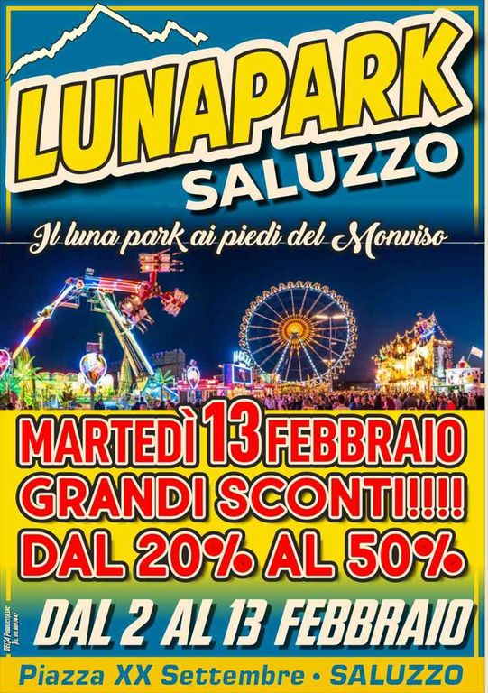 Per salutare il Lunapark Saluzzo, martedì 13 febbraio è prevista una giornata di sconti dal 20 al 50% su tutte le attrazioni.