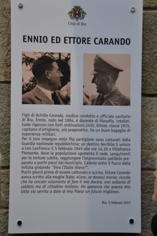 Il 5 febbraio 2024 ricorrono 79 anni dal giorno in cui i due partigiani braidesi Ettore ed Ennio Carando furono trucidati a Villafranca Piemonte per essersi rifiutati di rivelare ai repubblichini che li avevano catturati importanti informazioni rispetto al loro operato.