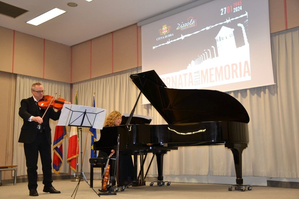 Al mattino Fabio Bailo ha guidato un partecipato itinerario pedonale sulle tracce della persecuzione a Bra, mentre nel pomeriggio l’Auditorium Bper ha ospitato il “Concerto della memoria”, a cura del duo Bianchi-Demicheli.